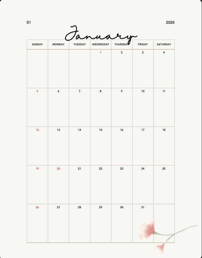 She will better understand her monthly "Area of Concentration" (AOC) that will help her to better develop as an athlete. Complete with a cleaning schedule and self-care routine to help develop good emotional health routines, finished with a daily affirmation of self-love and her commitment to growth.